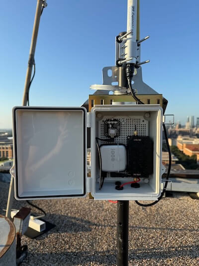 Using RAK RAKBox-B2 Enclosure with solar panel. The panel was connected directly to the RAK Wireless WisBlock Starter Kit US915. We connected a 2000 MAh Lithium Polymer battery directly to the RAK board. We drilled a hole in the top of the box and attached a fiberglass antenna, which was connected to the RAK board with an iPEX to N-Type connector. We mounted this on top of one of the UT buildings and it died within a month. The 0.4 watt panel is way too small.
